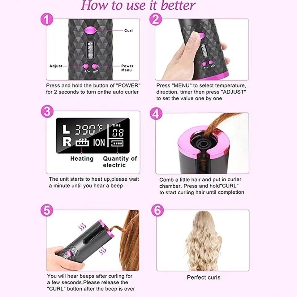 Use fácil de usar & portable】o tambor vai girar automaticamente ao redor e envoltório seção do cabelo na câmara de ondulação. Fácil de transportar ao viajar, pode enrolar seu cabelo a qualquer hora e em qualquer lugar, longe do problema com a linha.